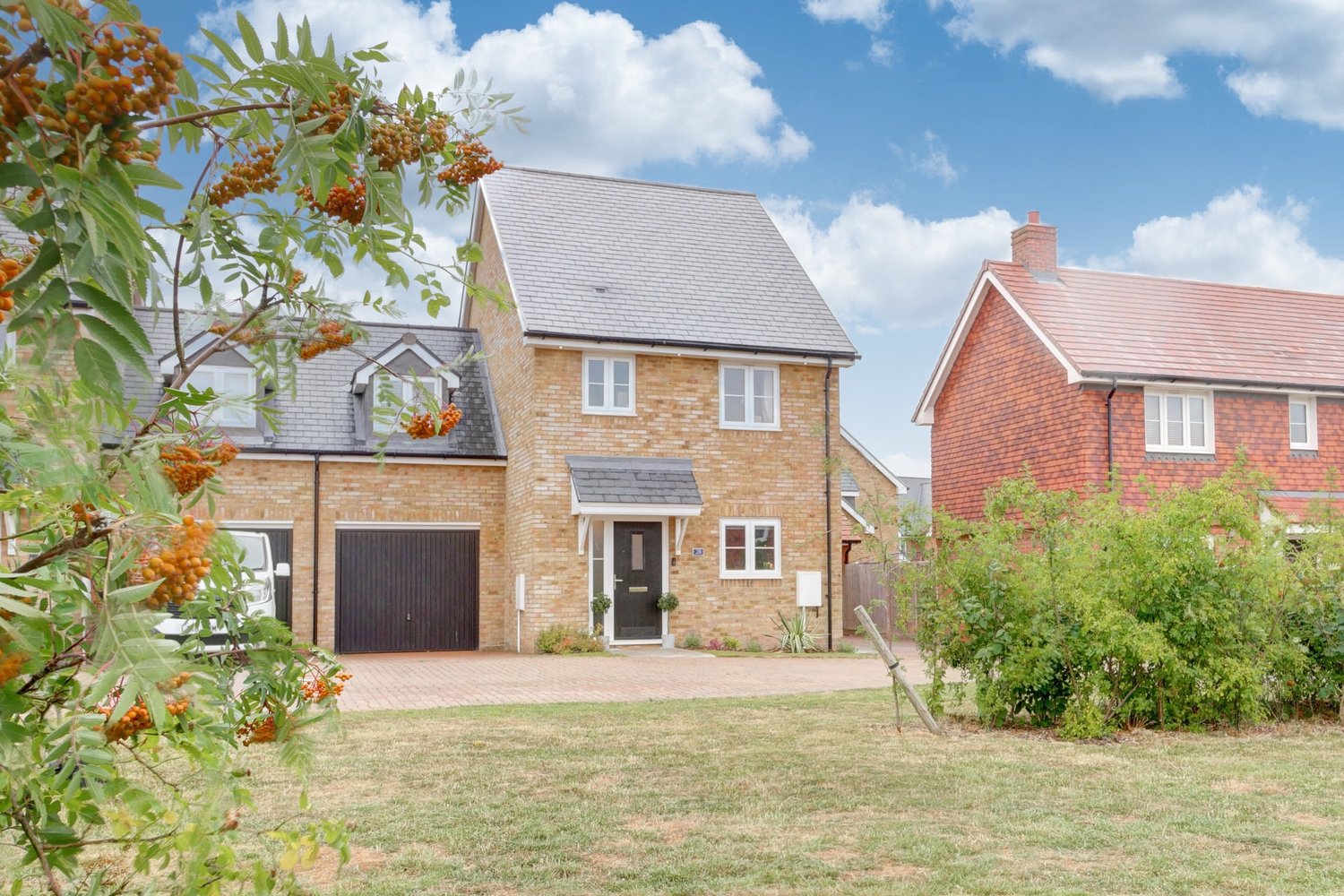 A beautiful house for a lover of new builds. Immaculately presented, this semi-detached house is a wonderful design having 3 genuine double bedrooms as well as all of the features that you'd expect to find in a modern house. There's a family bathroom, en-suite shower room and a ground floor W/C meaning that there's no queuing for the bathroom in the morning, a garage and 2 off road parking spaces that makes coming and going a breeze and a kitchen/breakfast room designed with modern living in mind. The homely living room leads out on to the garden which is lawned and beautifully planted out with shrubs and small trees making it wonderful place to relax on those warm summer days. Tucked away in a pleasant position, it's a great example of a modern home...............and its chain free.